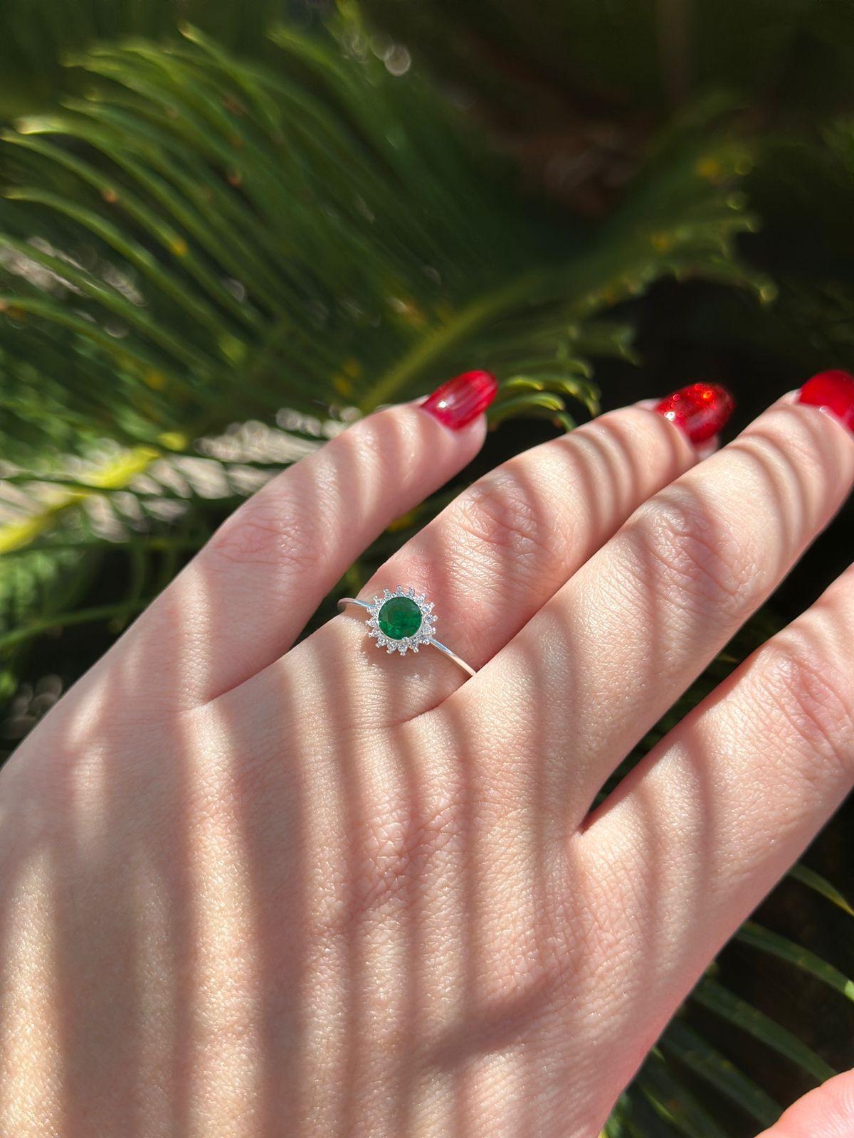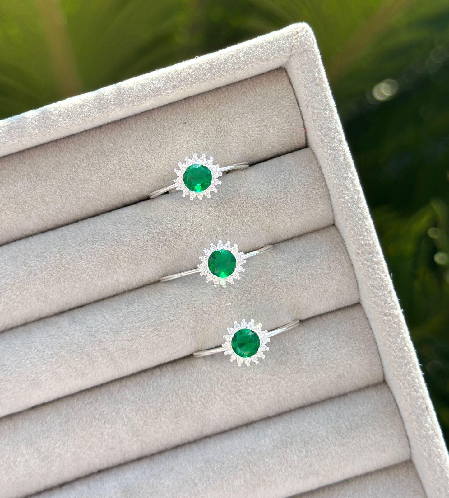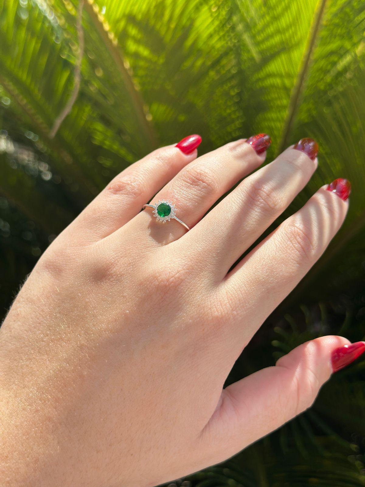 Modelo: Anel Solitário Redondo Verde Cravejado