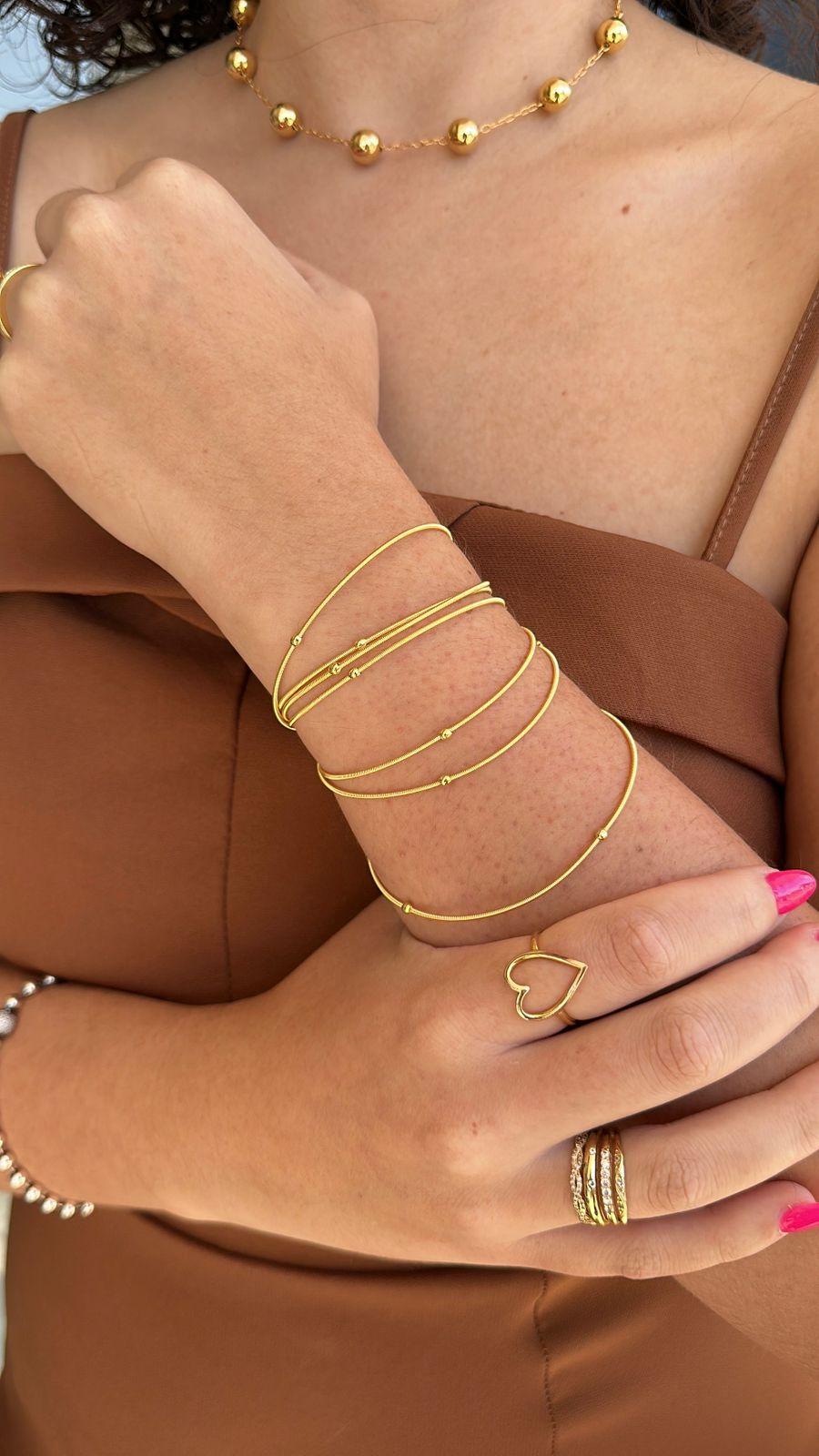 Pulseira Corda de Violão Esferas Folheado Ouro 18K