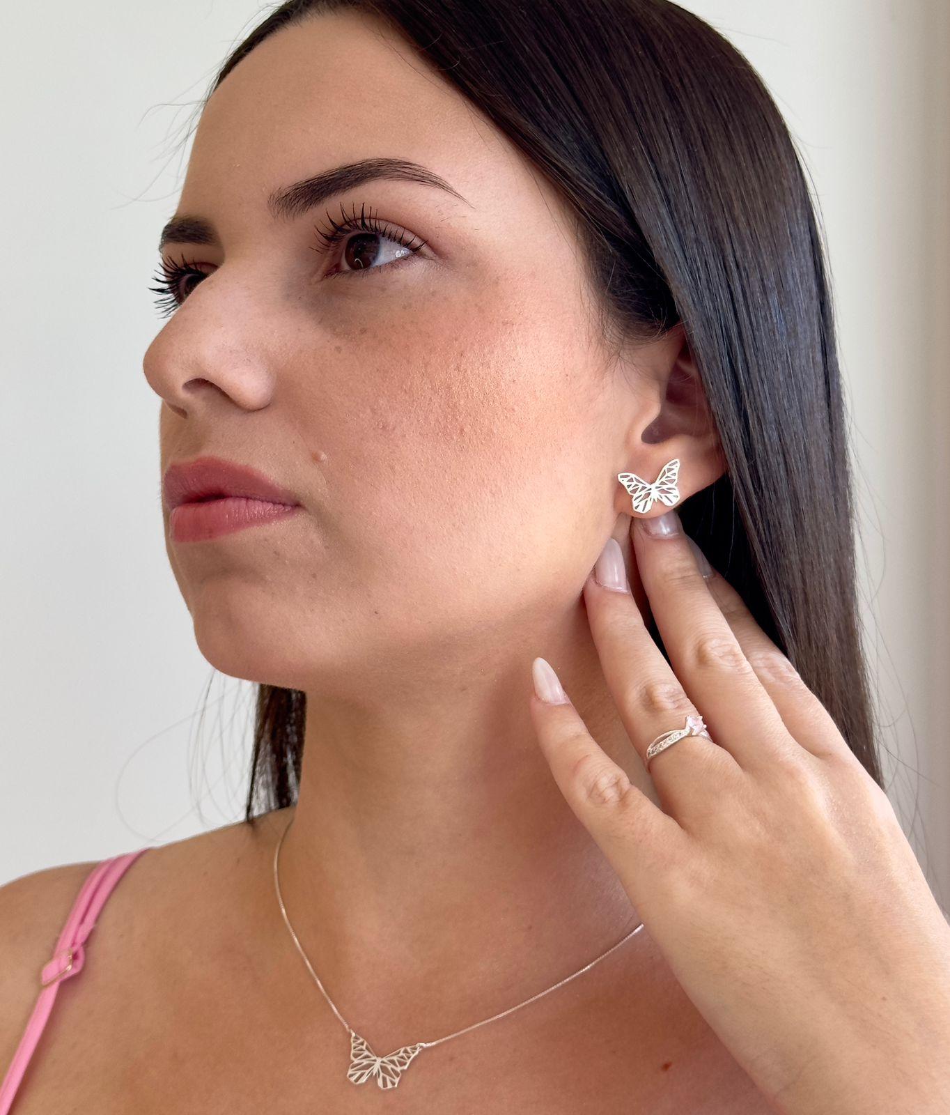 Delicado e cheio de significado, o Brinco Borboleta Origami Vazada em Prata 925 une leveza e sofisticação em um design moderno.