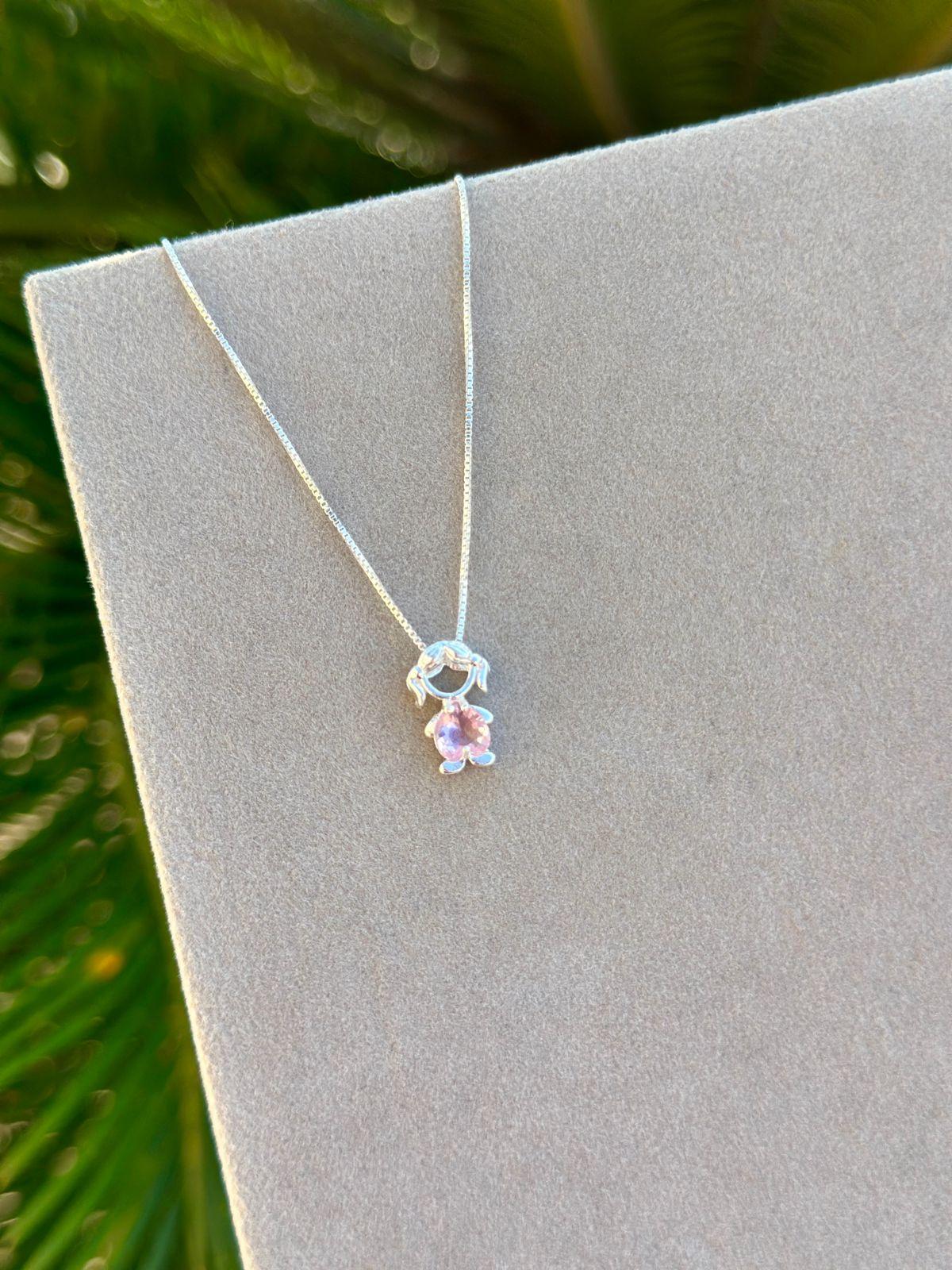 O pingente é detalhado com zircônias que refletem brilho e delicadeza, tornando esta joia perfeita para mães que desejam carregar o amor de uma filha sempre por perto.