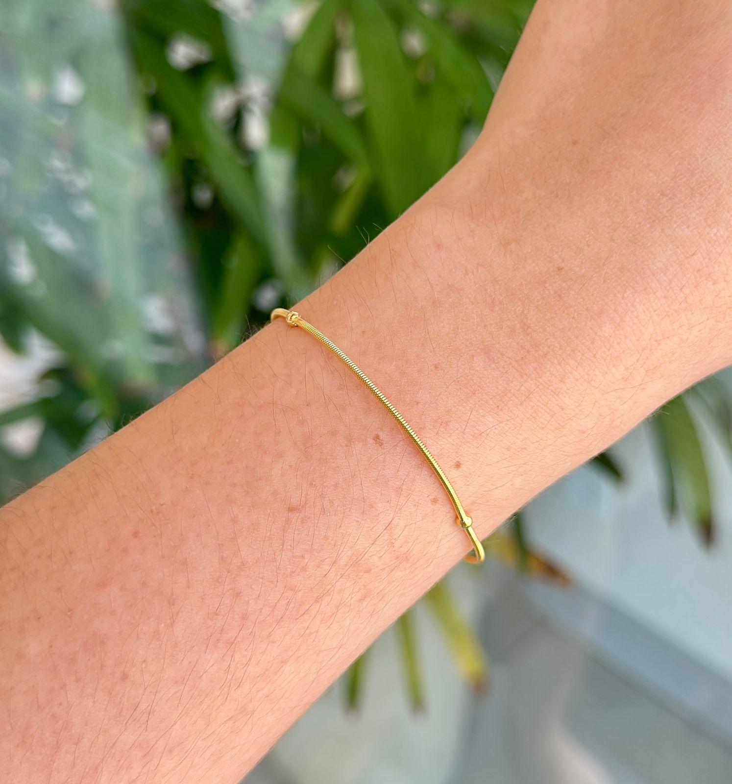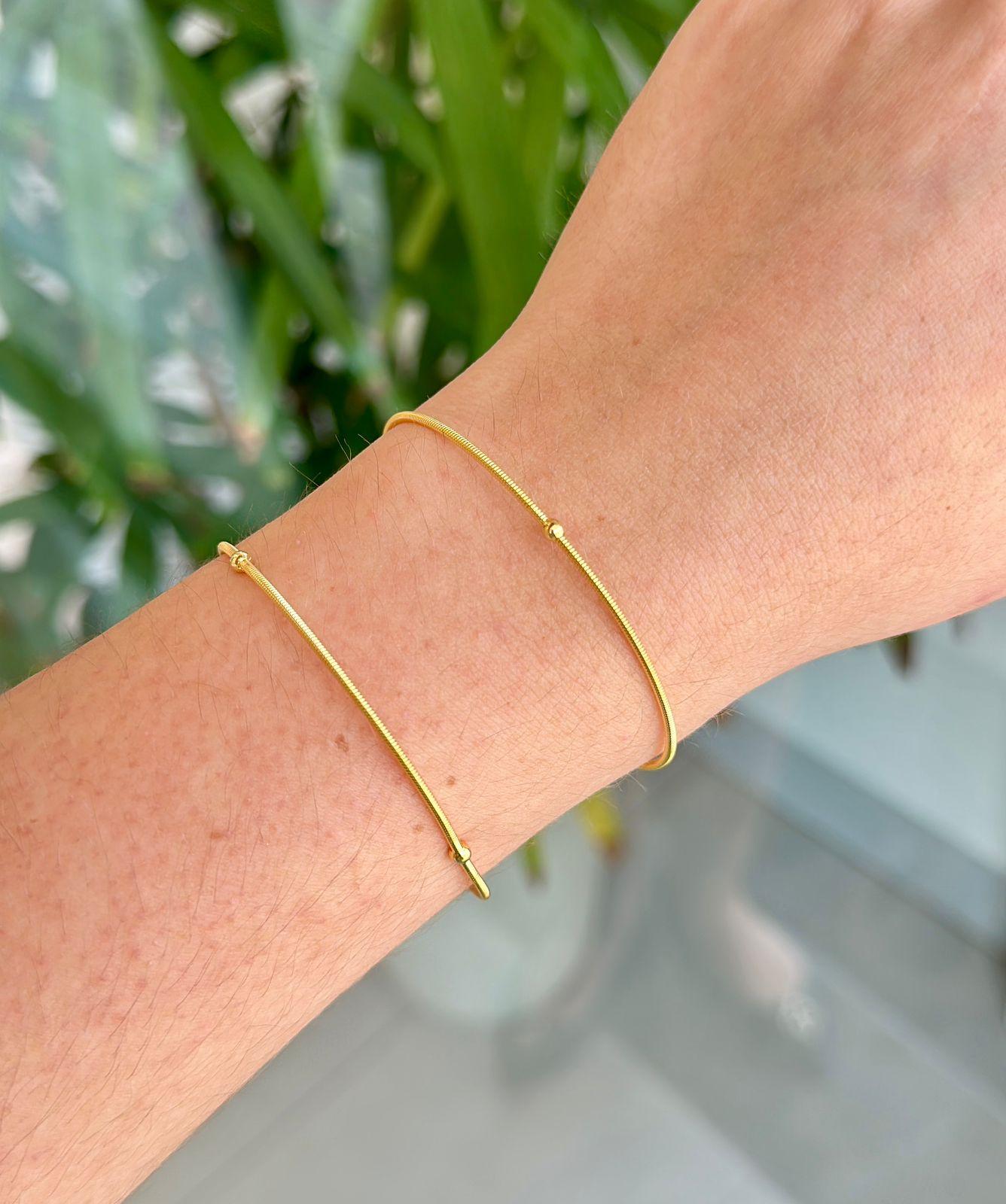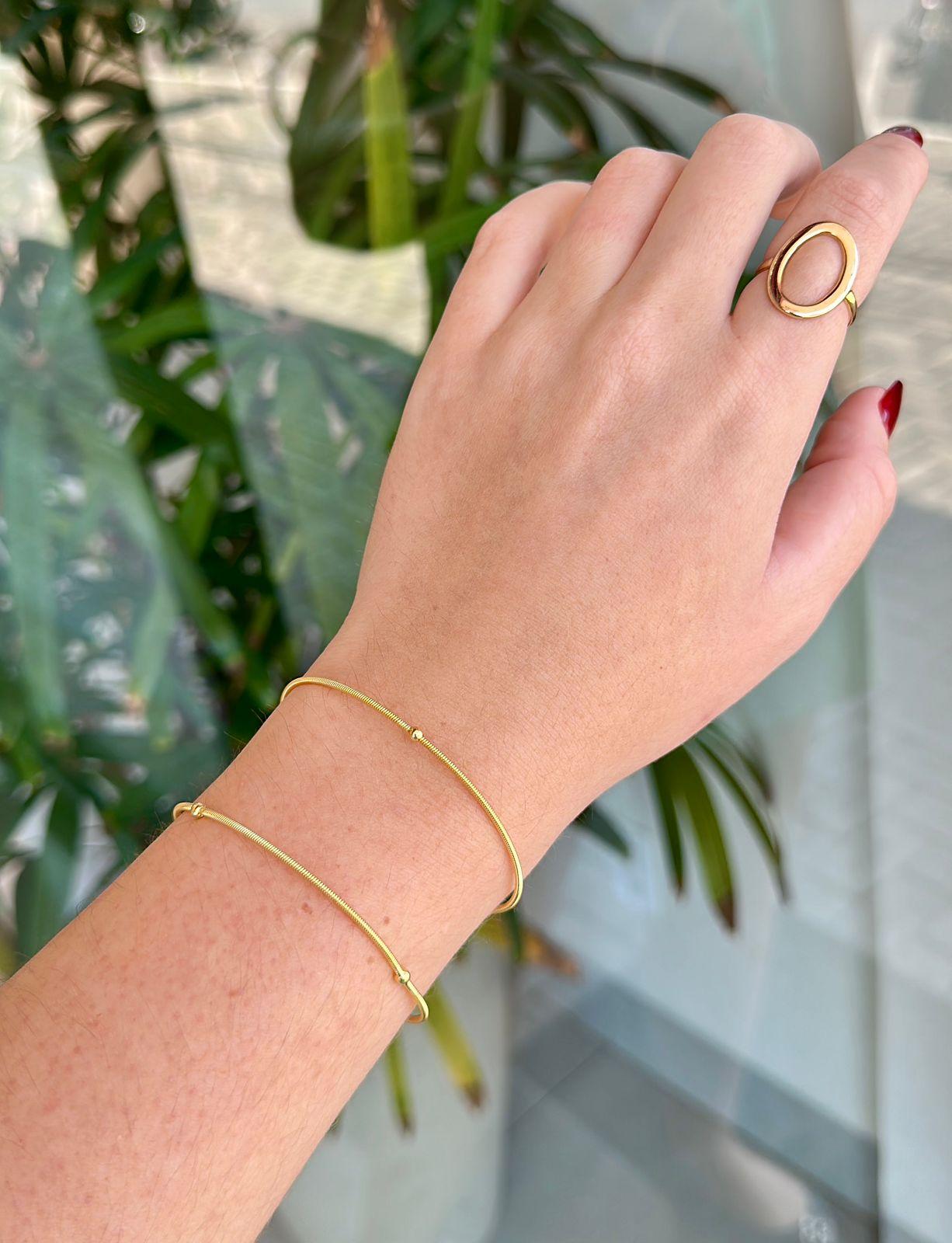 Pulseira Corda de Violão Bolinha 1 Volta Ouro 18K