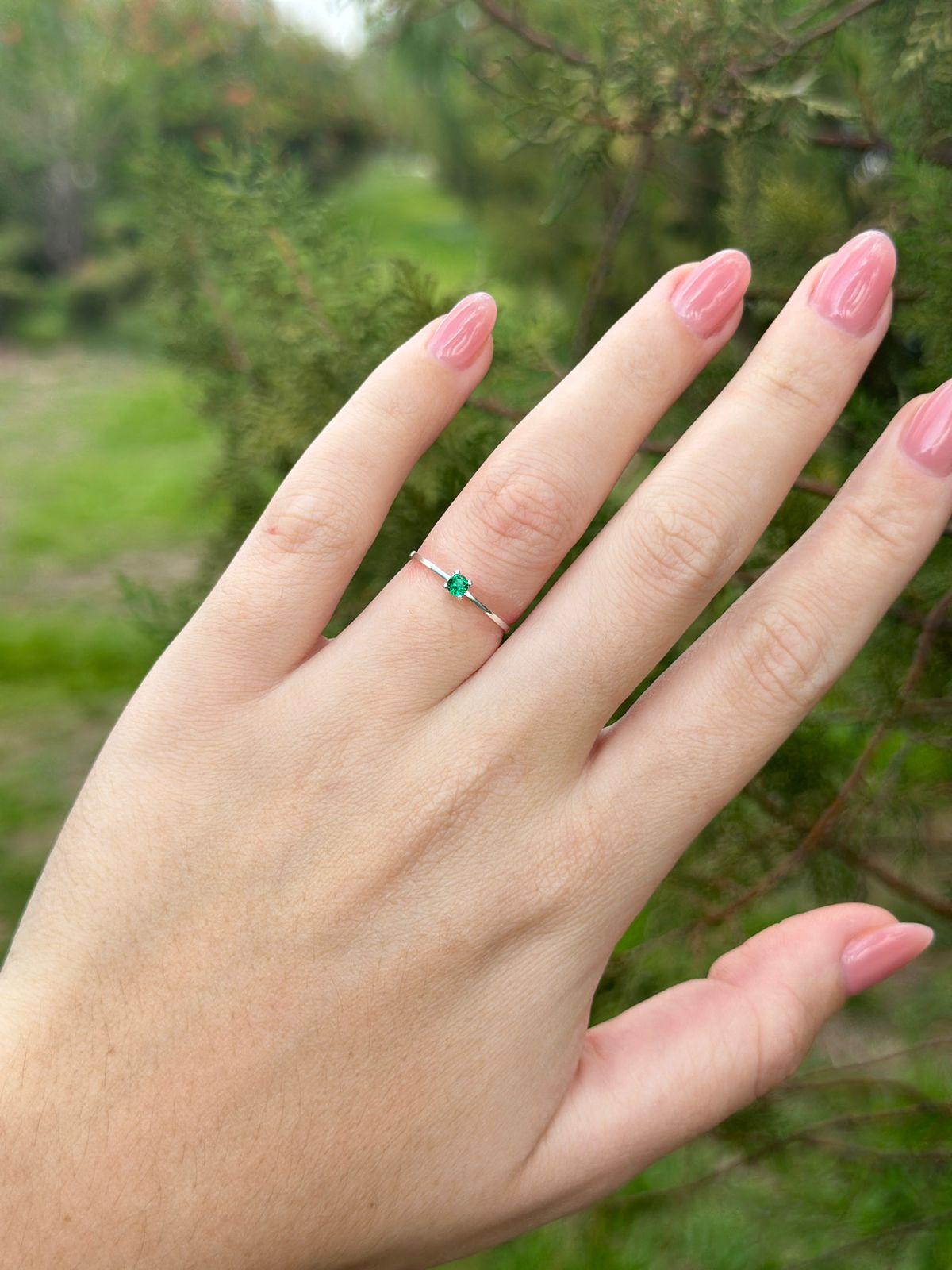 Anel Solitário Zircônia Verde Prata 925
