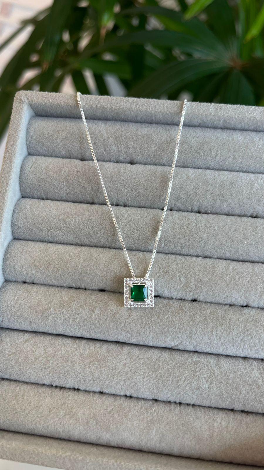Colar Quadrado Ponto de Luz Color Cravejado Zircônia Prata 925