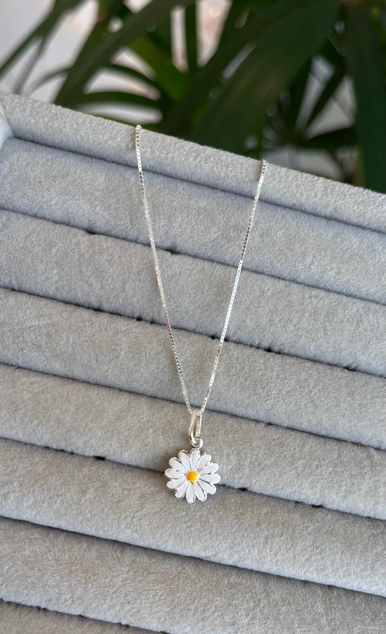 Colar Margarida Resinada Prata 925
