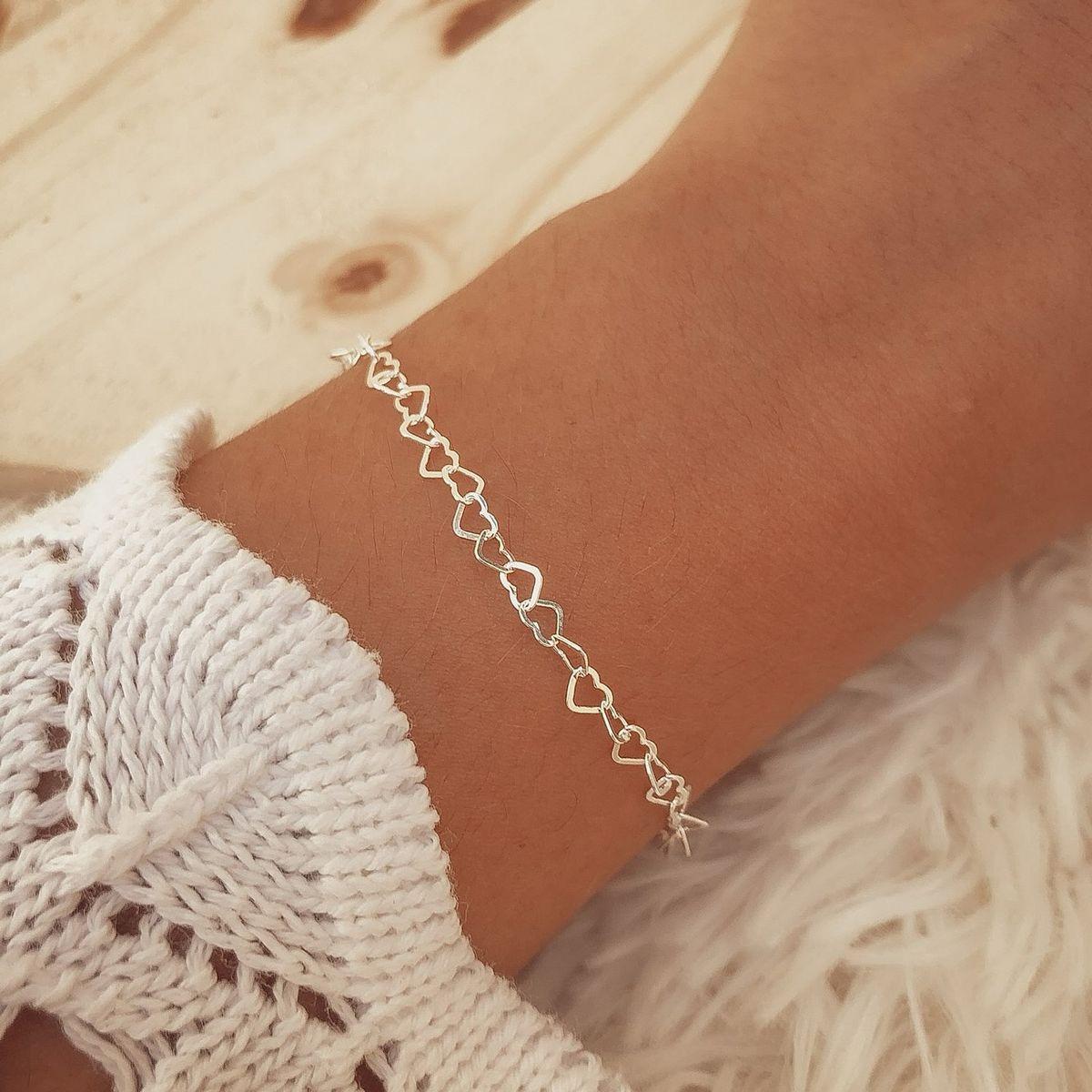 Esta pulseira é composta por elos em formato de coração, que criam um design delicado e cheio de significado.